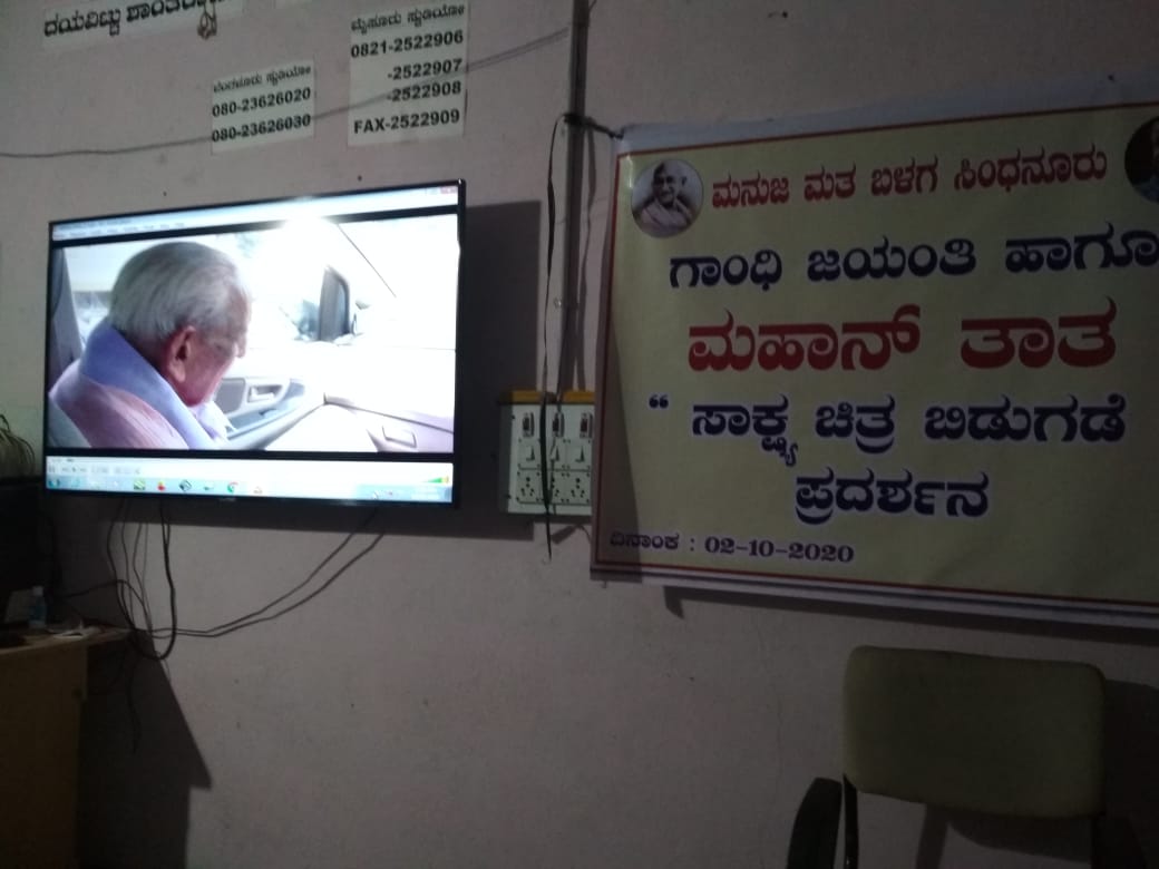 ಹಿರಿಯ ಸ್ವಾತಂತ್ರ್ಯ ಹೋರಾಟಗಾರ, ಶತಾಯುಷಿ ಎಚ್.ಎಸ್ ದೊರೆಸ್ವಾಮಿಯವರ ಹೋರಾಟ ಜೀವನದ ಕುರಿತ ‘ಮಹಾನ್ ತಾತ’ ಸಾಕ್ಷ್ಯಚಿತ್ರವನ್ನು 103 ವರ್ಷದ ದೊರೆಸ್ವಾಮಿಯವರ ಗೌರವಾರ್ಥವಾಗಿ ನಿನ್ನೆ ರಾಜ್ಯದ 103 ಕಡೆಗಳಲ್ಲಿ ಪ್ರದರ್ಶನ ಮಾಡಲಾಗಿದೆ.