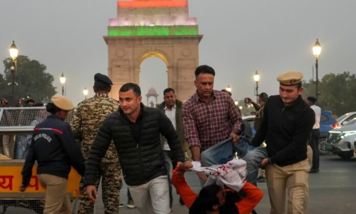 ಇಂಡಿಯಾ ಗೇಟ್ ಬಳಿ ಪ್ರತಿಭಟನೆ ವೇಳೆ ಪೊಲೀಸರ ಕರ್ತವ್ಯಕ್ಕೆ ಅಡ್ಡಿಪಡಿಸಿ, ಹಲ್ಲೆ ನಡೆಸಿದ ಆರೋಪದ ಮೇಲೆ ಬಂಧನ ಮಾಡಲಾಗಿದೆ ಎಂದು ಅಧಿಕಾರಿಗಳು ಹೇಳಿರುವುದಾಗಿ ವರದಿ ಉಲ್ಲೇಖಿಸಿದೆ.