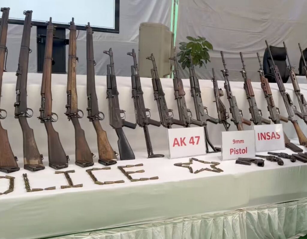 ಮಾವೋವಾದಿಗಳು 36 ಬಂದೂಕುಗಳು, 1,007 ಸುತ್ತು ಮದ್ದುಗುಂಡುಗಳು ಮತ್ತು 800 ಗ್ರಾಂ ಚಿನ್ನವನ್ನು ಹಸ್ತಾಂತರಿಸಿದರು. ಶರಣಾದ ಶಸ್ತ್ರಾಸ್ತ್ರಗಳಲ್ಲಿ ಐದು ಎಕೆ-47 ರೈಫಲ್ಗಳು, ನಾಲ್ಕು ಎಸ್ಎಲ್ಆರ್ ರೈಫಲ್ಗಳು, ಮೂರು ಐಎನ್ಎಸ್ಎಎಸ್ ರೈಫಲ್ಗಳು, ಆರು 303 ರೈಫಲ್ಗಳು, ಒಂದು 9ಎಂಎಂ ಸ್ಟೆನ್ ಗನ್, ಎರಡು 8ಎಂಎಂ ರೈಫಲ್ಗಳು, 10 ಸಿಂಗಲ್-ಶಾಟ್ ಗನ್ಗಳು, ಒಂದು 9ಎಂಎಂ ಪಿಸ್ತೂಲ್, ಎರಡು ರಿವಾಲ್ವರ್ಗಳು, ಒಂದು ಬಿಜಿಎಲ್ ಗನ್ ಮತ್ತು ಒಂದು ಏರ್ ಗನ್ ಸೇರಿವೆ.