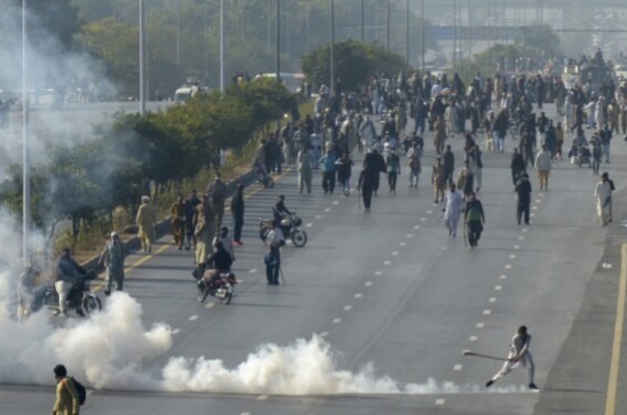 ಪಾಕಿಸ್ತಾನದ ಮಾಜಿ ಪ್ರಧಾನಿ ಇಮ್ರಾನ್ ಖಾನ್ ಅವರನ್ನು ಜೈಲಿನಿಂದ ಬಿಡುಗಡೆ ಮಾಡುವಂತೆ ಒತ್ತಾಯಿಸಿ ಇಸ್ಲಾಮಾಬಾದ್‌ನಲ್ಲಿ ಇಂದು (ನ.26) ನಡೆದ ಪ್ರತಿಭಟನೆ ಹಿಂಸಾಚಾರಕ್ಕೆ ತಿರುಗಿ, 6 ಮಂದಿ ಮೃತಪಟ್ಟಿದ್ದಾರೆ.