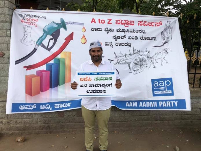 “ಬಿಜೆಪಿ ಸಹವಾಸ, ಜನಸಾಮಾನ್ಯರಿಗೆ ಉಪವಾಸ.. ಕಾರು, ಬೈಕು ಮ್ಯೂಸಿಯಂನಲ್ಲಿ, ಸೈಕಲ್‌ ಬಂಡಿ ರೋಡಿನಲ್ಲಿ, ಬಿಜೆಪಿ ನಿನ್ನ ಕಾಲದಲ್ಲಿ” ಎಂಬಂತಹ ಬ್ಯಾನರ್‌ ಫ್ಲೆಕಾರ್ಡುಗಳನ್ನಿಡಿದು, ಸೈಕಲ್‌ ಮತ್ತು ಕುದುರೆ ಬಂಡಿ ಮೇಲೆ ಸವಾರಿ ಮಾಡುವ ಮೂಲಕ ಆಪ್‌ ಕಾರ್ಯಕರ್ತರು ಬೆಂಗಳೂರಿನಲ್ಲಿ ಪೆಟ್ರೋಲ್, ಡೀಸೆಲ್ ಮೇಲಿನ ತೆರಿಗೆ ಹೆಚ್ಚಳ ಖಂಡಿಸಿ ವಿನೂತನ ಪ್ರತಿಭಟನೆ ನಡೆಸಿದರು.