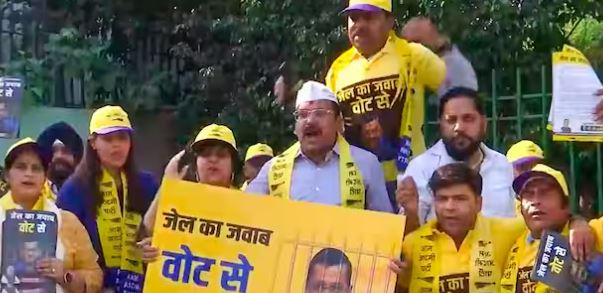ಆಮ್ ಆದ್ಮಿ ಪಕ್ಷದ ‘ಜೈಲ್ ಕಾ ಜವಾಬ್ ವೋಟ್ ಸೇ’ ಅಭಿಯಾನದ ಭಾಗವಾಗಿ ಪೂರ್ವ ದೆಹಲಿ ಪ್ರದೇಶದ ಫುಟ್ ಓವರ್ ಬ್ರಿಡ್ಜ್ ಬಳಿ ಪ್ರತಿಭಟನೆ ನಡೆಸಲಾಗಿದೆ. ಪೂರ್ವ ದೆಹಲಿ ಕ್ಷೇತ್ರದ ಎಎಪಿ ಅಭ್ಯರ್ಥಿ ಕುಲದೀಪ್ ಕುಮಾರ್ ನೇತೃತ್ವದಲ್ಲಿ ಆಯೋಜಿಸಲಾಗಿದ್ದ ಅಭಿಯಾನದಲ್ಲಿ ಭಿತ್ತಿಪತ್ರಗಳನ್ನು ಹಿಡಿದು ‘ಜೈಲ್ ಕಾ ಜವಾಬ್ ವೋಟ್ ಸೇ’ ಎಂದು ಎಎಪಿ ಕಾರ್ಯಕರ್ತರು ಘೋಷಣೆಗಳನ್ನು ಕೂಗಿದ್ದಾರೆ.