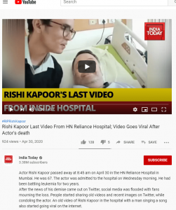 ಆಶ್ಚರ್‍ಯವೆಂದರೆ ಇಂಡಿಯಾ ಟುಡೆ ಚಾನೆಲ್‌ ಸಹ ಇದನ್ನು ಕಪೂರ್‌ ನಿಧನದ ಹಿಂದಿನ ರಾತ್ರಿಯ ಲಾಸ್ಟ್‌ ವಿಡಿಯೋ ಎಂದು ವರದಿ ಪ್ರಸಾರ ಮಾಡಿದೆ. ಯೂಟ್ಯೂಬ್‌ನಲ್ಲಿ ಹಾಕಿದೆ. ಆದರೆ ಸತ್ಯ ತಿಳಿದ ನಂತರ ಅದನ್ನು ಡಿಲಿಟ್‌ ಮಾಡಿದ್ದಲ್ಲದೇ ಅವರೇ ಫ್ಯಾಕ್ಟ್‌ ಚೆಕ್‌ ನಡೆಸಿ ಹಳೆಯ ವಿಡಿಯೋ ಎಂದಿದೆ. ಆ ಚಾನೆಲ್‌ನ ನಿರ್ದೇಶಕರಾದ ರಾಹುಲ್‌ ಕುನ್ವಾಲ್‌ ಫ್ಯಾಕ್ಟ್‌ ಚೆಕ್‌ ವರದಿಯನ್ನು ಹಂಚಿಕೊಂಡಿದ್ದಾರೆ.