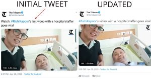 ಎಬಿಪಿ ನ್ಯೂಸ್, ಫ್ರೀ ಪ್ರೆಸ್ ಜರ್ನಲ್ ಮತ್ತು ದಿ ಟ್ರಿಬ್ಯೂನ್ ಆರಂಭದಲ್ಲಿ ವೀಡಿಯೊ ಕಪೂರ್ ಅವರ “ಕೊನೆಯ ವಿಡಿಯೋ” ಎಂದು ವರದಿ ಮಾಡಿದವು. ಆದರೆ ನಂತರ ವರದಿಗಳನ್ನು ಬದಲಾಯಿಸಿದವು. ದಿ ಟ್ರಿಬ್ಯೂನ್ ತನ್ನ ಟ್ವೀಟ್ ಅನ್ನು ಅಳಿಸಿಹಾಕಿತು ಮತ್ತು ‘ಕೊನೆಯ’ ಎಂಬ ಪದವನ್ನು ತೆಗೆದು ಪೋಸ್ಟ್ ಮಾಡಿತು. ಇತರರು ತಮ್ಮ ವರದಿಗಳನ್ನು ಬದಲಾಯಿಸಿದರು.
