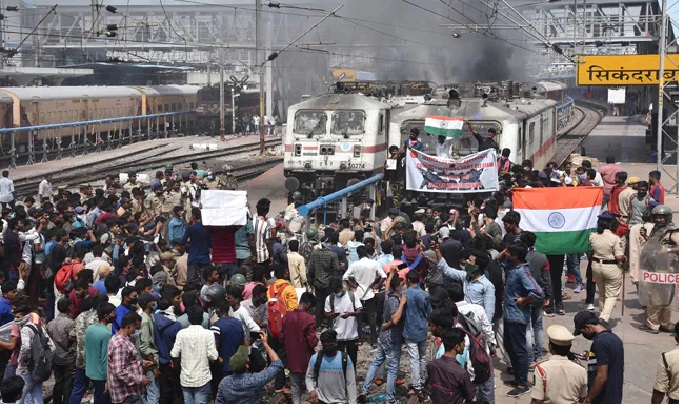 ಶುಕ್ರವಾರ ಸಾವಿರಾರು ಪ್ರತಿಭಟನಾಕಾರರು ರೈಲ್ವೇ ನಿಲ್ದಾಣದಲ್ಲಿ ಹಲವಾರು ಪ್ರಯಾಣಿಕರ ರೈಲುಗಳ ಮೇಲೆ ದಾಳಿ ಮಾಡಿ, ಕೋಚ್‌ಗಳನ್ನು ಸುಟ್ಟುಹಾಕಿ ಮತ್ತು ಸಾರ್ವಜನಿಕ ಆಸ್ತಿಯನ್ನು ನಾಶಪಡಿಸಿದ್ದರಿಂದ ವಾರಂಗಲ್‌ನ 19 ವರ್ಷದ ರಾಜೇಶ್ ಕೊಲ್ಲಲ್ಪಟ್ಟರು ಮತ್ತು ಒಂದು ಡಜನ್‌ಗೂ ಹೆಚ್ಚು ಜನರು ಗಾಯಗೊಂಡರು.