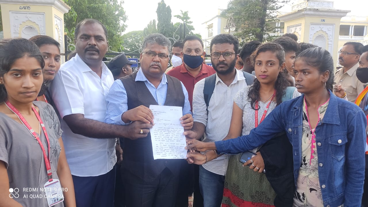 ಪ್ರವೇಶ ಶುಲ್ಕ, ಸ್ಕಾಲರ್ಶಿಪ್ ಹಾಗೂ ಮಹಾರಾಣಿ ಕಾಲೇಜು ಕುಸಿದಿರುವ ಘಟನೆಯನ್ನು ಮುಂದಿಟ್ಟುಕೊಂಡು AIDSO ವಿದ್ಯಾರ್ಥಿ ಸಂಘಟನೆ ನೇತೃತ್ವದಲ್ಲಿ ಮಹಾರಾಣಿ ಕಾಲೇಜು ವಿದ್ಯಾರ್ಥಿಗಳು ಮೈಸೂರು ವಿಶ್ವವಿದ್ಯಾನಿಲಯದ ಎದುರುಗಡೆ ಶುಕ್ರವಾರ ಪ್ರತಿಭಟನೆ ನಡೆಸಿದ್ದಾರೆ.