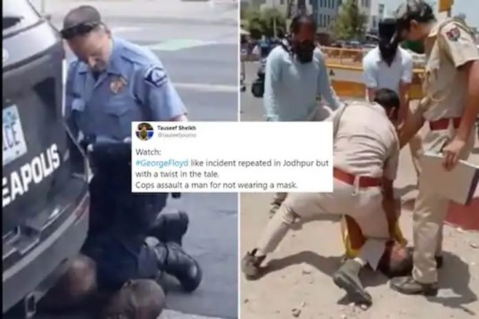 ಗುರುವಾರ ಮುಖೇಶ್ ಕುಮಾರ್ ಪ್ರಜಾಪತ್ ಎಂಬ ವ್ಯಕ್ತಿಯೊಬ್ಬ ಜೋಧಪುರ ನಗರದಲ್ಲಿ ಮಾಸ್ಕ್ ಹಾಕಿಕೊಳ್ಳದೆ ಓಡಾಡಿದ್ದಾನೆ. ಈ ಕಾರಣಕ್ಕೆ ಆತನನ್ನು ವಿಚಾರಣೆ ನಡೆಸುವ ವೇಳೆ ಪೊಲೀಸರು ಕಟುವಾಗಿ ವರ್ತಿಸಿದ್ದು ನೆಲಕ್ಕೆ ಬೀಳಿಸಿ ಕತ್ತಿನ ಮೇಲೆ ಮೊಣಕಾಲಿಟ್ಟು ವಿಚಾರಣೆ ನಡೆಸಿದ್ದಾರೆ. ಆದರೆ, ಈ ಘಟನೆ ಅಮೆರಿಕದ ಜಾರ್ಜ್ ಫ್ಲಾಯ್ಡ್ ಸಾವಿನ ವೀಡಿಯೊವನ್ನು ನೆನಪಿಸುವಂತಿದೆ.