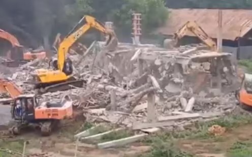 ಇಂದು (ಜೂನ್ 22) ಮುಂಜಾನೆ ಐದು ಗಂಟೆ ಸುಮಾರಿಗೆ ಪುರಸಭೆ ಅಧಿಕಾರಿಗಳು ಬುಲ್ಡೋಝರ್‌ಗಳ ಮೂಲಕ ಕಟ್ಟಡ ಕೆಡವಿದ್ದಾರೆ. ಕೇವಲ ಎರಡು ಗಂಟೆಗಳಲ್ಲಿ ಧ್ವಂಸ ಕಾರ್ಯಾಚರಣೆ ಪೂರ್ಣಗೊಂಡಿದೆ. ಈ ವೇಳೆ ವೈಎಸ್‌ಆರ್ ಕಾಂಗ್ರೆಸ್‌ ಕಾರ್ಯಕರ್ತರು ಸ್ಥಳಕ್ಕೆ ಬಾರದಂತೆ ತಡೆಯಲು ಬ್ಯಾರಿಕೇಡ್‌ ಹಾಕಿ ಬಿಗಿ ಪೊಲೀಸ್ ಬಂದೋಬಸ್ತ್ ಏರ್ಪಡಿಸಲಾಗಿತ್ತು. ಕಟ್ಟಡ ಧ್ವಂಸದಿಂದ ತಾಡೇಪಲ್ಲಿಯಲ್ಲಿ ಬಿಗುವಿನ ವಾತಾವರಣ ನಿರ್ಮಾಣವಾಗಿದೆ.