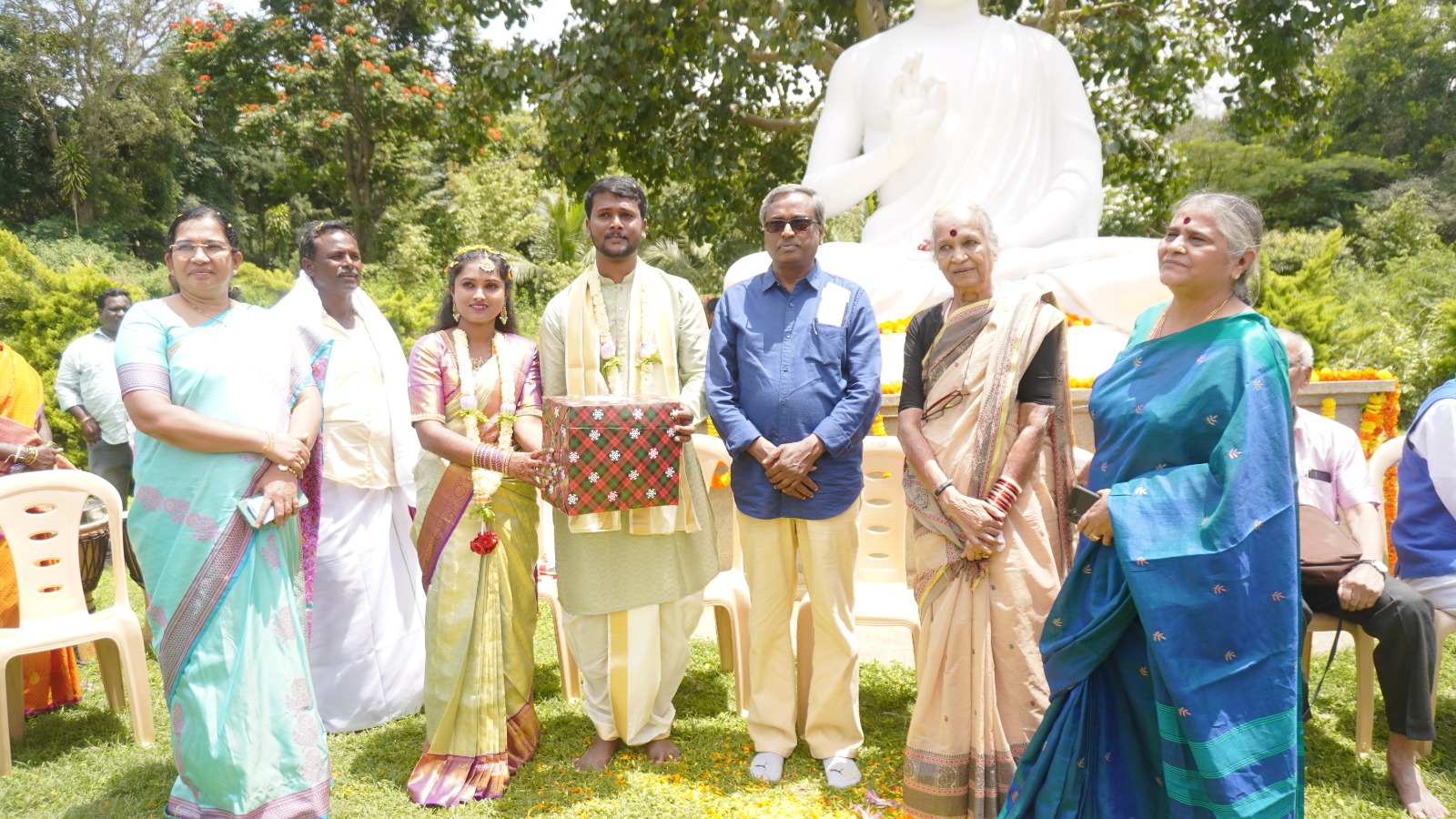 ಡಾ. ವಿದ್ಯಾಕುಮಾರಿ ತಮ್ಮ ವೈಯಕ್ತಿಕ ಅನುಭವವನ್ನು ಹಂಚಿಕೊಳ್ಳುವ ಮೂಲಕ ಹೊಸ ದಂಪತಿಗೆ ಪ್ರೇರಣೆ ತುಂಬಿದರು. “ನನಗೀಗ 26 ವರ್ಷಗಳ ಹಿಂದಿನ ನನ್ನ ಮದುವೆ ನೆನಪಾಗುತ್ತಿದೆ. ನಾನು ಮತ್ತು ಡಾಮಿನಿಕ್ ಇದೇ ರೀತಿಯ ಸರಳ ವಿವಾಹವಾಗಿದ್ದೆವು. ಆಗ ಸುಮಾರು 65 ಜನರ ಮಧ್ಯೆ ನಡೆದ ಆ ಮದುವೆಗೆ ಬಹುಶಃ ಮೂರೂವರೆ ಸಾವಿರ ರೂಪಾಯಿ ಮಾತ್ರ ಖರ್ಚಾಗಿತ್ತು” ಎಂದರು. ಬಟ್ಟೆ, ಊಟ ಎಲ್ಲವನ್ನೂ ಸೇರಿಸಿ ಅತ್ಯಂತ ಸರಳವಾಗಿ ನಡೆದ ಆ ಮದುವೆಗೆ, ಅವರು ಮೊದಲು ನೋಂದಣಿ ಮಾಡಿಸಿದ್ದೆವು ಎಂದು ವಿವರಿಸಿದರು.