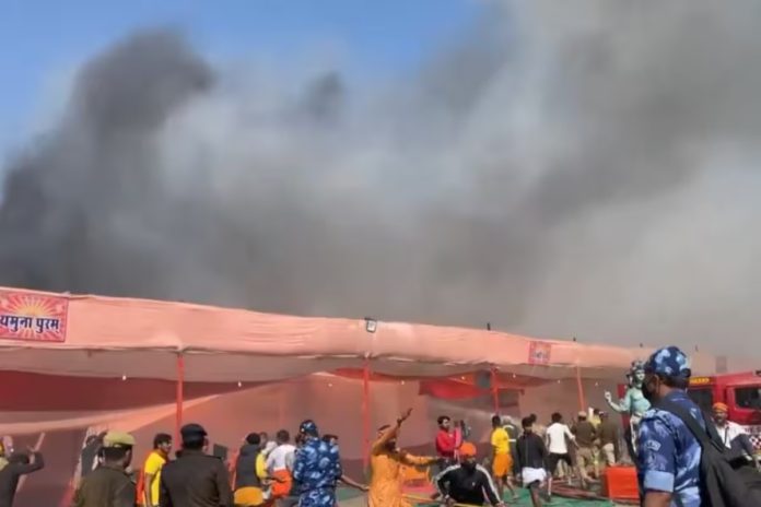 ಉತ್ತರ ಪ್ರದೇಶದ ಪ್ರಯಾಗರಾಜ್‌ನ ಮಹಾ ಕುಂಭದ ಸೆಕ್ಟರ್ 18 ರಲ್ಲಿ ಶುಕ್ರವಾರ ಬೆಂಕಿ ಕಾಣಿಸಿಕೊಂಡಿದೆ. ಶಂಕರಾಚಾರ್ಯ ಮಾರ್ಗದಲ್ಲಿರುವ ಹರಿಹರಾನಂದ ಶಿಬಿರದಲ್ಲಿರುವ 20 ಕ್ಕೂ ಹೆಚ್ಚು ಟೆಂಟ್‌ಗಳಿಗೆ ಬೆಂಕಿ ಹರಡಿದೆ. ಅಗ್ನಿಶಾಮಕ ದಳದವರು ತಕ್ಷಣ ಸ್ಥಳಕ್ಕೆ ಧಾವಿಸಿ ಬೆಂಕಿಯನ್ನು ನಂದಿಸಿದ್ದಾರೆ.