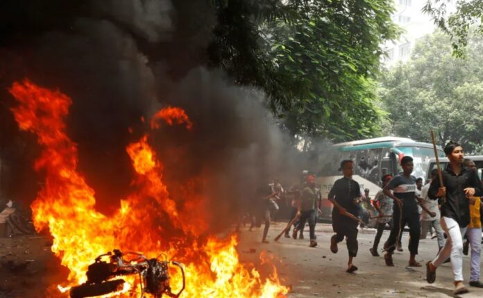 ಬಾಂಗ್ಲಾದೇಶದಲ್ಲಿ ಪ್ರಧಾನಿ ಶೇಖ್ ಹಸೀನಾ ರಾಜೀನಾಮೆಗೆ ಒತ್ತಾಯಿಸಿ ವಿದ್ಯಾರ್ಥಿಗಳು ನಡೆಸುತ್ತಿರುವ ‘ಅಸಹಕಾರ ಚಳುವಳಿ’ಯು ಹಿಂಸಾಚಾರಕ್ಕೆ ತಿರುಗಿದ್ದು, ಪ್ರತಿಭಟನಾಕಾರರು ಮತ್ತು ಆಡಳಿತರೂಢ ಅವಾಮಿ ಲೀಗ್ ಪಕ್ಷದ ಬೆಂಬಲಿಗರ ನಡುವೆ ನಡೆದ ಘರ್ಷಣೆಯಲ್ಲಿ 98 ಮಂದಿ ಮೃತಪಟ್ಟಿದ್ದಾರೆ.