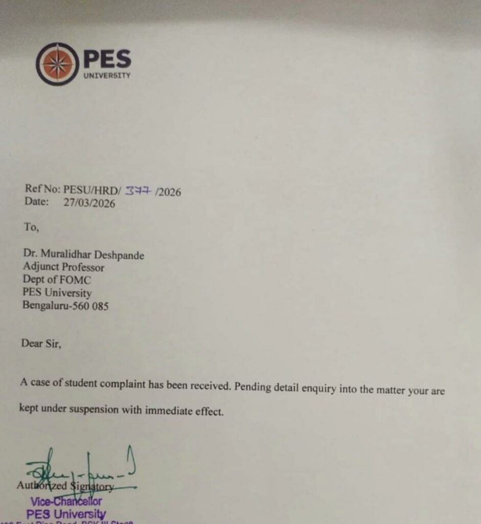 ಪ್ರಾಧ್ಯಾಪಕರೊಬ್ಬರು ತರಗತಿ ಕೊಠಡಿಯಲ್ಲೇ ಮುಸ್ಲಿಂ ವಿದ್ಯಾರ್ಥಿಯನ್ನು ‘ಟೆರರಿಸ್ಟ್’ ಎಂದು ನಿಂದಿಸಿದ ಘಟನೆ ಬೆಂಗಳೂರಿನ ಪಿಇಎಸ್ ವಿಶ್ವವಿದ್ಯಾಲಯದಲ್ಲಿ ನಡೆದಿದೆ.