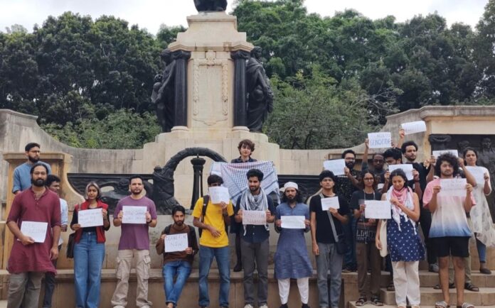 ಬೆಂಗಳೂರಿನ ಭಾರತೀಯ ವಿಜ್ಞಾನ ಸಂಸ್ಥೆ (ಐಐಎಸ್ಸಿ)ಯಲ್ಲಿ ‘ಭಾರತ-ಇಸ್ರೇಲ್ ವ್ಯಾಪಾರ ಶೃಂಗಸಭೆ’ ಆಯೋಜಿಸಿರುವುದನ್ನು ಖಂಡಿಸಿ ಹೋರಾಟಗಾರರು ಮತ್ತು ವಿದ್ಯಾರ್ಥಿಗಳು ಪ್ರತಿಭಟನೆ ನಡೆಸಿದರು.