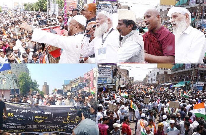 ಬೀದರ್: ಇತ್ತೀಚೆಗೆ ಜಾರಿಗೆ ತರಲಾದ ವಕ್ಫ್ ಕಾಯ್ದೆಯ ವಿರುದ್ಧ ವಿವಿಧ ಧರ್ಮಗಳು ಮತ್ತು ಎಲ್ಲಾ ಹಂತಗಳ ಸಾವಿರಾರು ಜನರು ಇತ್ತೀಚೆಗೆ ಇಲ್ಲಿ ಬೃಹತ್ ಪ್ರತಿಭಟನೆ ನಡೆಸಿದರು, ಈ ಕಾಯ್ದೆಗೆ ಅಸಮ್ಮತಿಯನ್ನು ವ್ಯಕ್ತಪಡಿಸಿದರು.