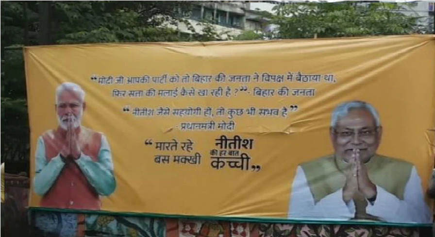ವಿಧಾನಸಭಾ ಚುನಾವಣೆಗೆ ಮುಂಚಿತವಾಗಿ ಮೋದಿ ಮತ್ತು ಕುಮಾರ್ ಅವರನ್ನು ಗುರಿಯಾಗಿಸುವ ಇತ್ತೀಚಿನ ಬ್ಯಾನರ್ಗಳು ಹಠಾತ್ತನೆ ಕಾಣಿಸಿಕೊಂಡಿದ್ದು, ಇದು ಪ್ರತಿಪಕ್ಷ ಆರ್ಜೆಡಿ ನೇತೃತ್ವದ ಮಹಾ ಮೈತ್ರಿ ಮತ್ತು ಎನ್ಡಿಎ ನಡುವಿನ ಬ್ಯಾನರ್ ಯುದ್ಧ ಎಂದೇ ಭಾವಿಸಲಾಗುತ್ತಿದೆ.
