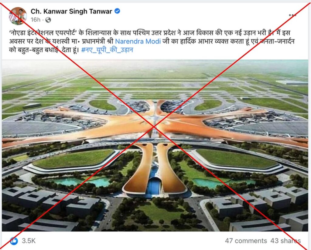 ಪ್ರಧಾನಿ ನರೇಂದ್ರ ಮೋದಿ ನವೆಂಬರ್ 25 ರ ಗುರುವಾರ ಉತ್ತರ ಪ್ರದೇಶದ ಜೇವರ್‌ನಲ್ಲಿ ವಿಮಾನ ನಿಲ್ದಾಣಕ್ಕೆ ಶಂಕುಸ್ಥಾಪನೆ ಮಾಡಿದ್ದರು. ಹೊಸದಾಗಿ ನಿರ್ಮಾಣವಾಗುತ್ತಿರುವ ಈ ವಿಮಾನ ನಿಲ್ದಾಣಕ್ಕೆ ನೋಯ್ಡಾ ಅಂತಾರಾಷ್ಟ್ರೀಯ ವಿಮಾನ ನಿಲ್ದಾಣ ಎಂದು ನಾಮಕರಣ ಮಾಡಲಾಗಿದೆ. ಈ ವಿಮಾನ ನಿಲ್ದಾಣವು ಪೂರ್ಣಗೊಂಡ ನಂತರ ಈ ರೀತಿ ಕಾಣಿಸುತ್ತದೆ ಎಂದು ಹೇಳಿಕೊಂಡು ವಿಮಾನ ನಿಲ್ದಾಣದ ಫೋಟೋ ಮತ್ತು ಚಿತ್ರವನ್ನು ಹಲವಾರು ಬಿಜೆಪಿ ನಾಯಕರು ತಮ್ಮ ಸಾಮಾಜಿಕ ಜಾಲತಾಣದಲ್ಲಿ ಹಂಚಿಕೊಂಡಿದ್ದಾರೆ.