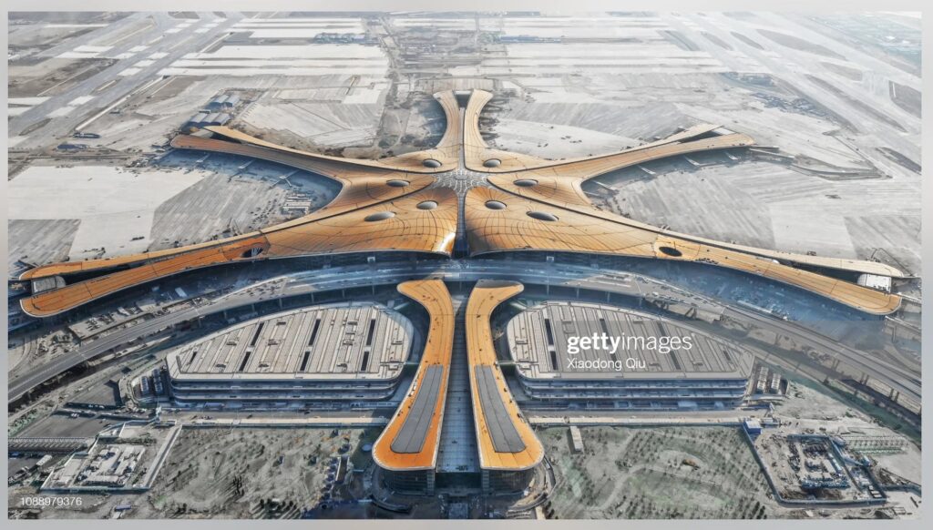 ಬೀಜಿಂಗ್ ನ್ಯೂ ಏರ್‌ಪೋರ್ಟ್ ಎಂದೂ ಕರೆಯಲ್ಪಡುವ ಬೀಜಿಂಗ್ ಡ್ಯಾಕ್ಸಿಂಗ್ ಇಂಟರ್‌ನ್ಯಾಶನಲ್ ಏರ್‌ಪೋರ್ಟ್ (PKX), ಮೇಲ್ಮೈ ವಿಸ್ತೀರ್ಣದಿಂದ ವಿಶ್ವದ ಅತಿದೊಡ್ಡ ವಿಮಾನ ನಿಲ್ದಾಣ ಎಂದು ಹೇಳಲಾಗುತ್ತದೆ. ನಿರ್ಮಾಣವು 2015 ರಲ್ಲಿ ಪ್ರಾರಂಭವಾಯಿತು ಮತ್ತು ಅದರ ಕಾರ್ಯಾಚರಣೆಗಳು ಸೆಪ್ಟೆಂಬರ್ 2019 ರಲ್ಲಿ ಪ್ರಾರಂಭವಾಯಿತು. ಈ ವಿಮಾನ ನಿಲ್ದಾಣದ ಚಿತ್ರವನ್ನು ಗೆಟ್ಟಿ ಕೂಡಾ ಕ್ಲಿಕ್ ಮಾಡಿದೆ.
