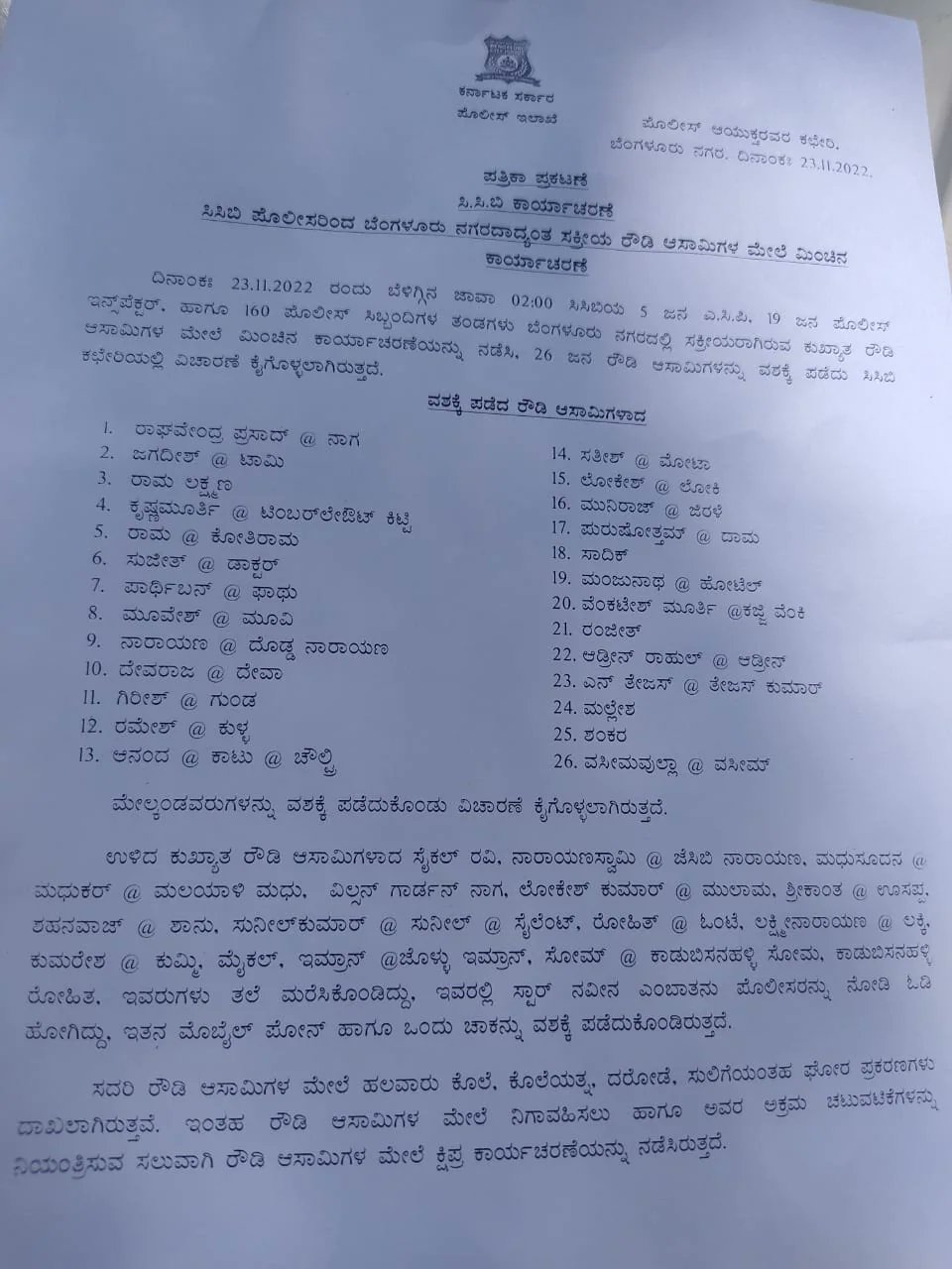 ಕಳೆದ ಹತ್ತು ತಿಂಗಳಲ್ಲಿ ಬೆಂಗಳೂರಿನಲ್ಲಿ ಕಾನ್‌ಸ್ಟೆಬಲ್‌ಗಳಿಂದ ಹಿಡಿದು ಐಪಿಎಸ್ ಅಧಿಕಾರಿಗಳವರೆಗೆ ಸುಮಾರು 124 ಪೊಲೀಸ್ ಸಿಬ್ಬಂದಿಯನ್ನು, ಭ್ರಷ್ಟಾಚಾರ, ಸುಲಿಗೆ, ದರೋಡೆ, ಕರ್ತವ್ಯ ಲೋಪ ಮತ್ತು ಮಾದಕವಸ್ತು ಮಾರಾಟದಂತಹ ಅಪರಾಧಗಳಿಗಾಗಿ ಅಮಾನತುಗೊಳಿಸಲಾಗಿದೆ. ಆದರೆ ಯಾವುದೇ ಪ್ರಕರಣವೂ...