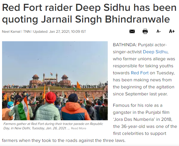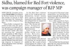 ಎಲ್ಲರಿಗೂ ತಿಳಿದಿರುವಂತೆ, ಕೆಲವು ಸಿಖ್ಖರು ಸಿಖ್ ಧರ್ಮದ ಧ್ವಜ ‘ನಿಶಾನ್ ಸಾಹೀಬ್’ಅನ್ನು ಕೆಂಪುಕೋಟೆಯಲ್ಲಿ ಹಾರಿಸಿದ್ದಾರೆ. ಆದರೆ ಇದು ರೈತರ ಹೋರಾಟವನ್ನು ದಿಕ್ಕುತಪ್ಪಿಸುವ ಸಲುವಾಗಿ ಬಿಜೆಪಿ ಕೈಗೊಂಡ ತಂತ್ರ ಎಂಬುದು ಶೀಘ್ರವೇ ತಿಳಿದುಬಂದಿದೆ. ಈ ಘಟನೆಯಲ್ಲಿ ಚರ್ಚೆಗೊಳಪಡುತ್ತಿರುವ ಪ್ರಮುಖ ವ್ಯಕ್ತಿ ದೀಪ್ ಸಿಧು.