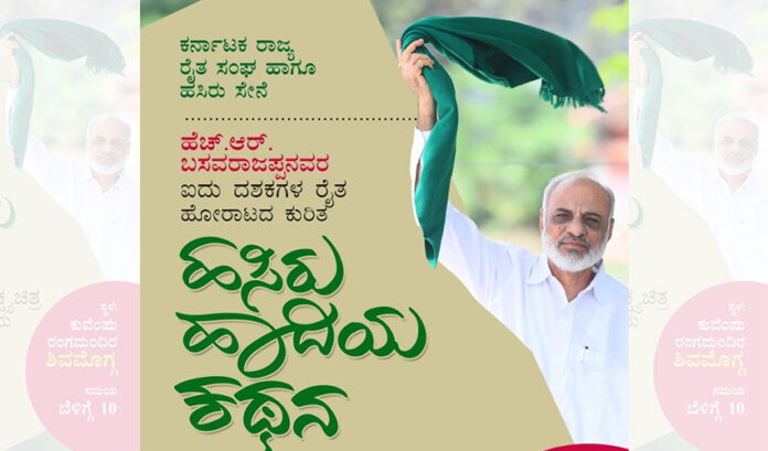 ಕರ್ನಾಟಕ ರಾಜ್ಯ ರೈತ ಸಂಘ ಮತ್ತು ಹಸಿರು ಸೇನೆಯ ಮುಖಂಡರಾದ ಹೆಚ್.ಆರ್ ಬಸವರಾಜಪ್ಪನವರ ಐದು ದಶಕಗಳ ರೈತ ಹೋರಾಟದ ಕುರಿತ ‘ಹಸಿರು ಹಾದಿಯ ಕಥನ’ ಪುಸ್ತಕ ಮತ್ತು ಸಾಕ್ಷ್ಯ ಚಿತ್ರ ಬಿಡುಗಡೆ ಕಾರ್ಯಕ್ರಮ ಮೇ 25ರ ಬುಧವಾರ ಶಿವಮೊಗ್ಗದಲ್ಲಿ ನಡೆಯಲಿದೆ.