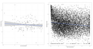 ಈ ನಗರಗಳಾದ್ಯಂತ ಹೆಚ್ಚು ಜಾತಿ ವೈವಿಧ್ಯ ಹೊಂದಿರುವ ನಗರ, ವಾರ್ಡ್ಗಳು ಕಡಿಮೆ ಪ್ರತ್ಯೇಕೀಕರಣ ಹೊಂದಿವೆಯೇ? ಇದೊಂದು ಮುಖ್ಯ ಪ್ರಶ್ನೆ; ಏಕೆಂದರೆ, ದೊಡ್ಡ ಸ್ಥಳಾವಕಾಶದಲ್ಲಿ ಹೆಚ್ಚಿನ ಜಾತಿ ವೈವಿಧ್ಯವು- ಗುಂಪುಗಳ ಪರಸ್ಪರ ಬೆರೆಯುವಿಕೆಗೆ ಮತ್ತು ಒಂದು ರೀತಿಯ ಸಾಮುದಾಯಿಕ ಭಾವನೆಗೆ ಹೆಚ್ಚಿನ ಅವಕಾಶ ಒದಗಿಸುತ್ತದೆ ಎಂಬ ವಾದವಿದೆ. ಆದರೆ, ಈ ಊಹೆಯು ಗಟ್ಟಿಯಾಗಿ ನಿಲ್ಲುವಂತೆ ನಮಗೆ ಕಾಣುವುದಿಲ್ಲ. ಈ 147 ನಗರಗಳಲ್ಲೇ ಆಗಿರಲಿ, ಅಥವಾ ಅವುಗಳಲ್ಲಿರುವ ವಾರ್ಡ್ಗಳಲ್ಲೇ ಆಗಿರಲಿ, ಅವುಗಳಲ್ಲಿ ಇರುವ ಹೆಚ್ಚಿನ ಜಾತಿ ವೈವಿಧ್ಯ ಮತ್ತು ಪ್ರತ್ಯೇಕೀಕರಣದ ಮಟ್ಟಕ್ಕೂ ಯಾವುದೇ ಸಂಬಂಧವಿಲ್ಲ. (ಚಿತ್ರ 4). ಜಾತಿ ವೈವಿಧ್ಯ ಇರುವ ನಗರಗಳು ಮತ್ತು ವಾರ್ಡ್ಗಳಲ್ಲೂ ಈ ಸೂಕ್ಷ್ಮ ಪ್ರತ್ಯೇಕೀಕರಣ ಇದೆ. ಇದು ಹೆಚ್ಚಾಗಿ ನಮ್ಮ ಕಣ್ಣಿಗೆ ಬೀಳುವುದಿಲ್ಲ. ಇದನ್ನು ನಾವು ’ಫ್ರಾಕ್ಟಲ್ ಅರ್ಬನಿಸಂ’ ಅಂದರೆ, ಬಿರುಕುಗೊಂಡ ನಗರೀಕರಣ ಎಂದು ಕರೆಯುತ್ತೇವೆ. (ಭಾರತಿ ಮತ್ತಿತರರು 2020).
