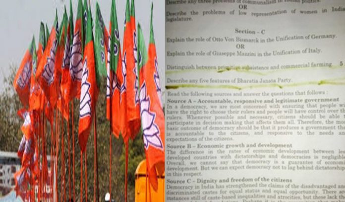 ಸಿಬಿಎಸ್ಇ 10 ನೇ ತರಗತಿ ಪರೀಕ್ಷೆಯಲ್ಲಿ ಬಿಜೆಪಿ ಪಕ್ಷದ ಲಕ್ಷಣಗಳನ್ನು ಬರೆಯುವಂತೆ ಕೇಳಲಾಗಿದೆ. ಕೇರಳದ ತಿರುವನಂತಪುರದ ಸಾಮಾಜಿಕ ಅಧ್ಯಯನ ಪ್ರಶ್ನೆಪತ್ರಿಕೆಯ ಕಡ್ಡಾಯ ವಿಭಾಗದಲ್ಲಿ 5 ಅಂಕಗಳನ್ನು ಹೊಂದಿರುವ ಈ ಪ್ರಶ್ನೆ ಹೊಸ ವಿವಾದ ಹುಟ್ಟುಹಾಕಿದೆ.