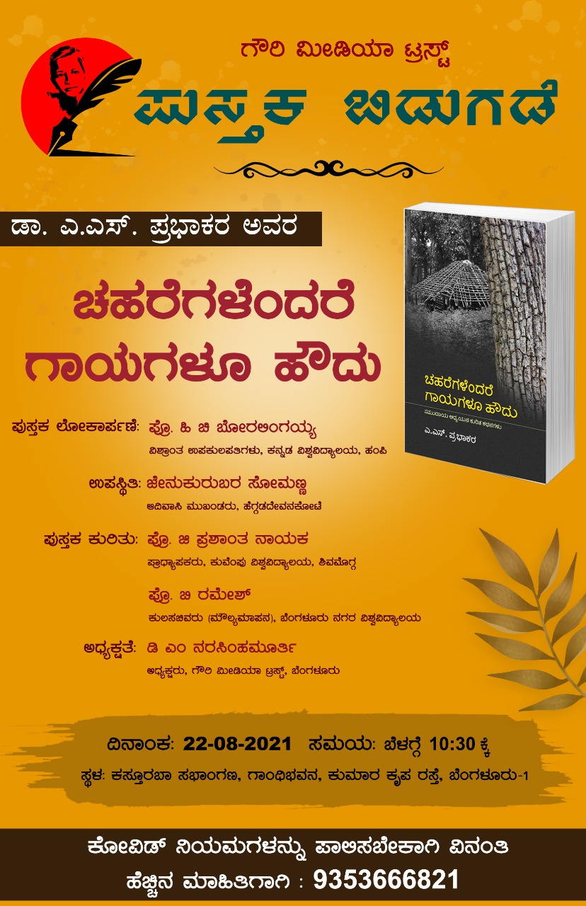 ಗೌರಿ ಮೀಡಿಯಾ ಟ್ರಸ್ಟ್ ಪ್ರಕಟಿಸಿರುವ, ಹಂಪಿ ವಿಶ್ವವಿದ್ಯಾಲಯದ ಪ್ರೊ. ಎ.ಎಸ್ ಪ್ರಭಾಕರ ಅವರ “ಚಹರೆಗಳೆಂದರೆ ಗಾಯಗಳೂ ಹೌದು” ಪುಸ್ತಕ ಬಿಡುಗಡೆ ಕಾರ್ಯಕ್ರಮ ನಾಳೆ ಭಾನುವಾರ ಬೆಳಗ್ಗೆ 10:30ಕ್ಕೆ, ಬೆಂಗಳೂರಿನ ಗಾಂಧಿ ಭವನ ಕಸ್ತೂರಭಾ ಸಭಾಂಗಣದಲ್ಲಿ ನಡೆಯಲಿದೆ.