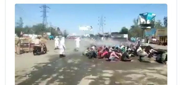 ಲಾಕ್ ಡೌನ್ ಕಾರಣಕ್ಕೆ ದೆಹಲಿಯಿಂದ ಉತ್ತರ ಪ್ರದೇಶದ ಬರೇಲಿಗೆ ನಡೆದುಬಂದ ವಲಸೆ ಕಾರ್ಮಿಕರಿಗೆ ಪ್ರಾಣಿಗಳಿಗಿಂತಲೂ ಕಡೆಯಾಗಿ ರಾಸಾಯನಿಕ ಔಷಧಿ ಸಿಂಪಡಿಸಿತ್ತಿರುವ ಯುಪಿ ಪೊಲೀಸರ ಕ್ರಮಕ್ಕೆ ತೀವ್ರ ಟೀಕೆ ವ್ಯಕ್ತವಾಗಿದೆ.