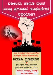 ತುರ್ತು ಹಕ್ಕೊತ್ತಾಯವಾಗಿ ‘ಗಣರಾಜ್ಯೋತ್ಸವದ ದಿನ ಅಂಬೇಡ್ಕರ್ ಫೋಟೊ ಇರಬೇಕು ಎಲ್ಲಾ ಇಲಾಖೆಗಳಿಗೆ ಸರ್ಕಾರ ಸುತ್ತೋಲೆ ಹೊರಡಿಸಿದೆ. ಅದನ್ನು ಉಲ್ಲಂಘಿಸಿ ರಾಯಚೂರು ಜಿಲ್ಲಾಧಿಕಾರಿ ತಾಂತ್ರಿಕ ಕಾರಣವೊಡ್ಡಿ ಅಂಬೇಡ್ಕರ್ ಫೋಟೊ ತೆಗೆಸಿದ್ದಾರೆ. ಇದು ಗಂಭೀರ ಲೋಪವಾಗಿದ್ದು, ಅವರ ಮೇಲೆ ಕಾನೂನು ರೀತ್ಯಾ ಕ್ರಮ ಕೈಗೊಳ್ಳಬೇಕು. ಕೂಡಲೇ ಹೈಕೋರ್ಟ್ ಎಲ್ಲಾ ನ್ಯಾಯಾಲಯಗಳಿಗೆ ಅಂಬೇಡ್ಕರ್ ಫೋಟೊ ಇರಬೇಕೆಂಬ ಸುತ್ತೋಲೆ ಹೊರಡಿಸಬೇಕು ಎಂದು ಆಗ್ರಹಿಸಿ ಜನವರಿ 28ರ ಶುಕ್ರವಾರ ಪ್ರತಿಭಟನೆಗೆ ಕರೆ ನೀಡಲಾಗಿದೆ.