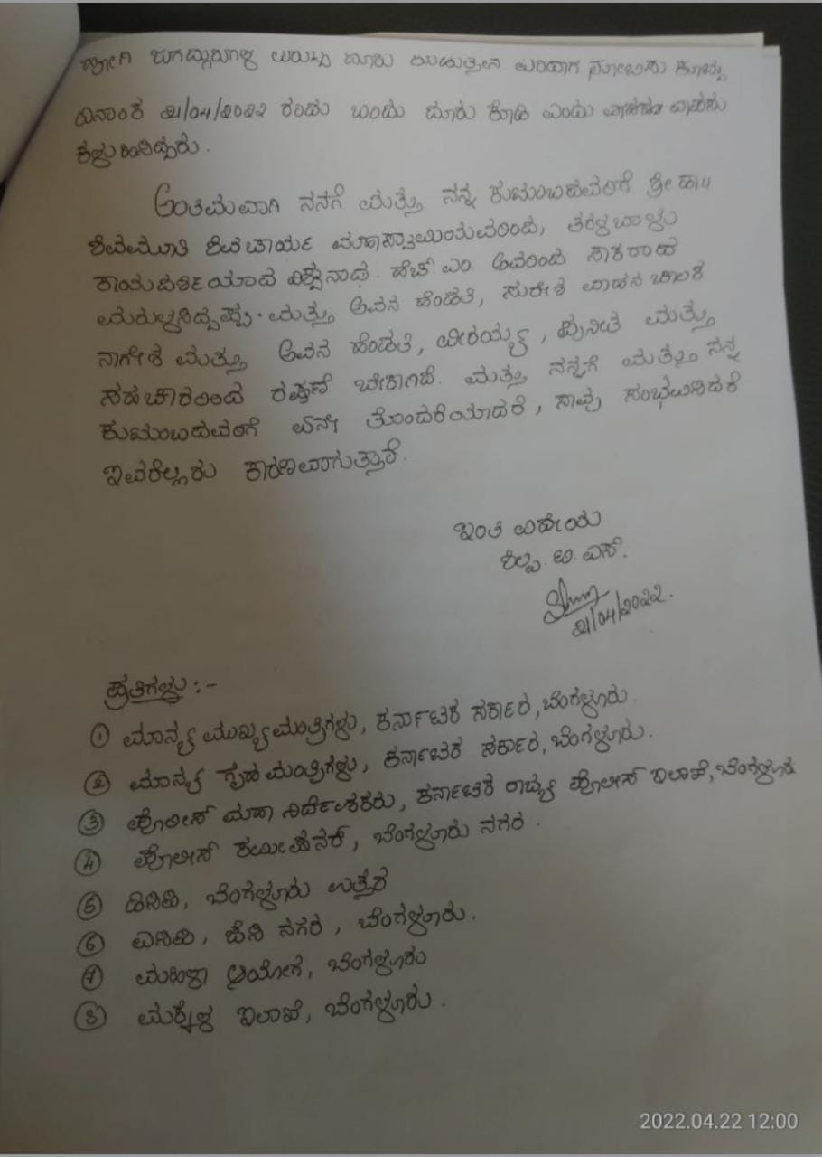 ದೂರಿನ ಪ್ರತಿಯನ್ನು ಮುಖ್ಯಮಂತ್ರಿಗಳು, ಗೃಹಮಂತ್ರಿಗಳು, ಪೊಲೀಸ್ ಮಹಾ ನಿರ್ದೇಶಕರು, ಪೊಲೀಸ್ ಕಮಿಷನರ್, ಡಿಸಿಪಿ, ಎಸಿಪಿ, ಮಹಿಳಾ ಆಯೋಗ, ಮಕ್ಕಳ ಇಲಾಖೆಗೂ ಕೂಡ ಸಲ್ಲಿಸಲಾಗಿದೆ.