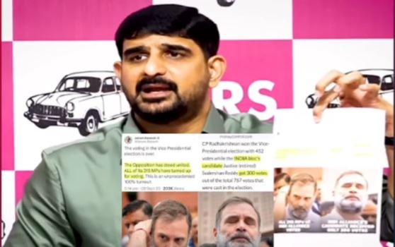 ಮಂಗಳವಾರ (ಸೆ.16) ಹೈದರಾಬಾದ್ನ ತೆಲಂಗಾಣ ಭವನದಲ್ಲಿ ಮಾಧ್ಯಮ ಪ್ರತಿನಿಧಿಗಳನ್ನುದ್ದೇಶಿಸಿ ಮಾತನಾಡಿದ ಕೌಶಿಕ್ ರೆಡ್ಡಿ, “ಉಪರಾಷ್ಟ್ರಪತಿ ಚುನಾವಣೆಯ ಫಲಿತಾಂಶ ಪ್ರಕಟಗೊಂಡಾಗ ಕಾಂಗ್ರೆಸ್ ವಕ್ತಾರ ಜೈರಾಮ್ ರಮೇಶ್ ಸಾಮಾಜಿಕ ಜಾಲತಾಣಗಳಲ್ಲಿ ಒಂದು ಪೋಸ್ಟ್ ಹಾಕಿದ್ದರು. ಅದರಲ್ಲಿ 315 ಮತಗಳು ಇಂಡಿಯಾ ಒಕ್ಕೂಟದ ಅಭ್ಯರ್ಥಿ ಸುದರ್ಶನ್ ರೆಡ್ಡಿ ಪರ ಬಿದ್ದಿವೆ ಎಂದಿದ್ದರು. ಈ ಮೂಲಕ ಇಂಡಿಯಾ ಒಕ್ಕೂಟ ಒಗ್ಗಟ್ಟು ಪ್ರದರ್ಶಿಸಿವೆ ಎಂದು ಹೇಳಿದ್ದರು. ಆದರೆ, ಚುನಾವಣಾ ಆಯೋಗದ ಅಧಿಕೃತ ಪ್ರಕಟನೆ ಮತ್ತು ಮಾಧ್ಯಮ ವರದಿಗಳು 300 ಮತಗಳು ಮಾತ್ರ ಸುದರ್ಶನ್ ರೆಡ್ಡಿ ಪರ ಚಲಾವಣೆಯಾಗಿವೆ ಎಂದಿವೆ. ಹಾಗಾದರೆ, 15 ಮತಗಳು ಎಲ್ಲಿಗೆ ಹೋಯಿತು?…15 ಅಡ್ಡ ಮತದಾನವಾಗಿದೆ. ಈ ಪೈಕಿ 8 ತೆಲಂಗಾಣದ ಕಾಂಗ್ರೆಸ್ ಸಂಸದರದ್ದು” ಎಂದು ಗಂಭೀರ ಆರೋಪ ಮಾಡಿದ್ದಾರೆ.
