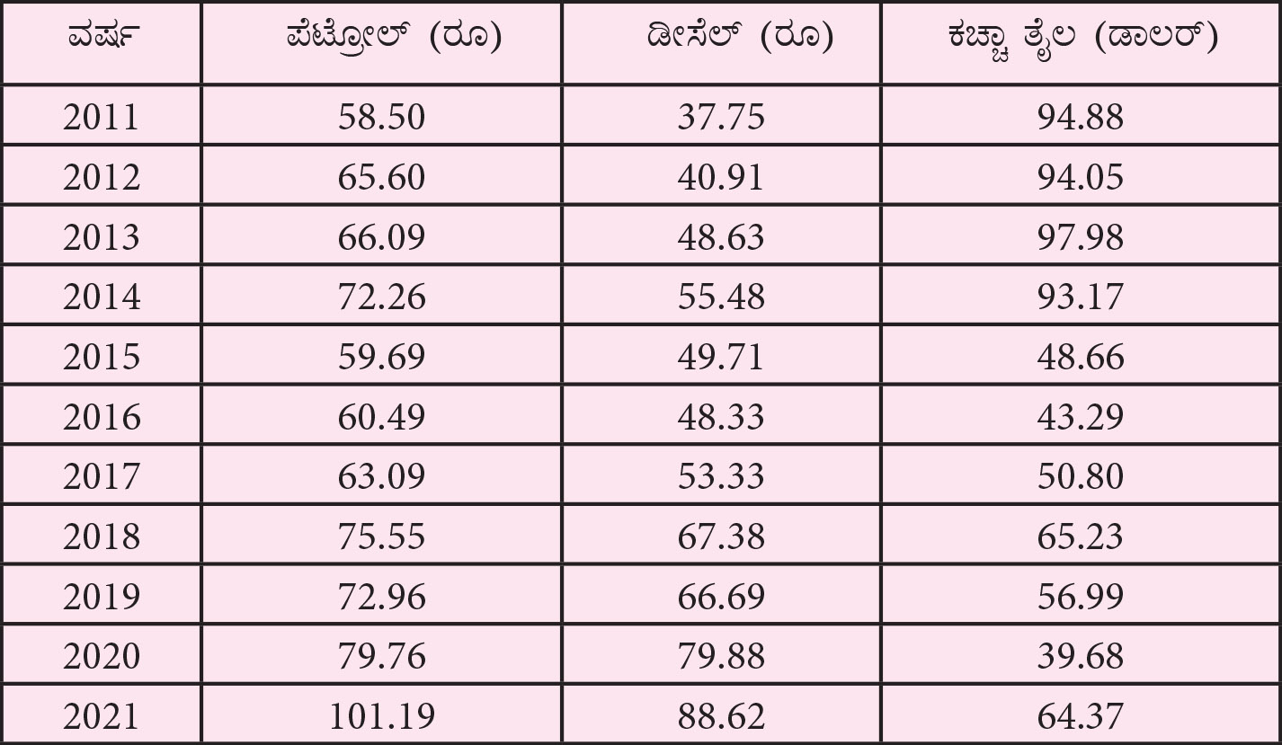 ಕಳೆದ ಹನ್ನೊಂದು ವರ್ಷಗಳ ಸರಾಸರಿ ದರ (ದೆಹಲಿಯಲ್ಲಿ ಪ್ರತಿ ಲೀಟರ್‌ಗೆ)