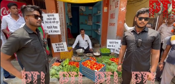VIDEO | A vegetable vendor in Varanasi, UP has hired bouncers to keep customers at bay when they come to buy tomatoes, whose price has increased massively over the past few days. "I have hired bouncers because the tomato price is too high. People are indulging in violence and… pic.twitter.com/qLpO86i9Ux