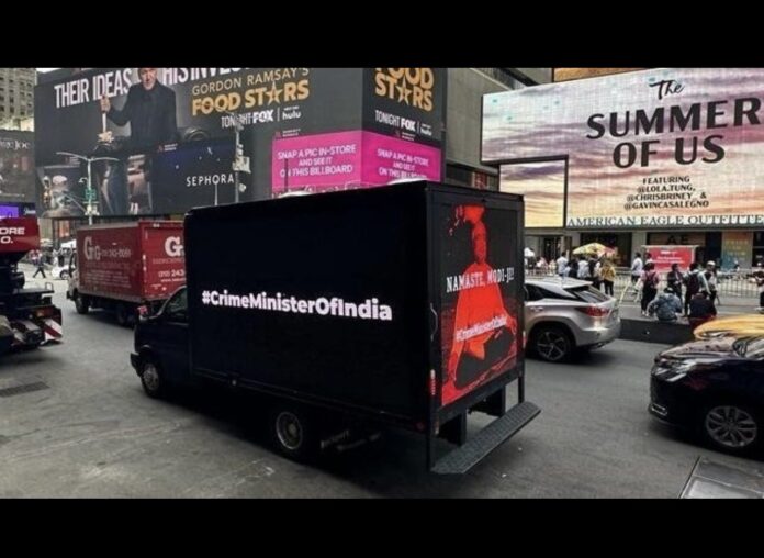Trucks in NYC spreading truth about Modi 👊🏾#ModiNotWelcome #CrimeMinisterModi pic.twitter.com/YoDzs5a727