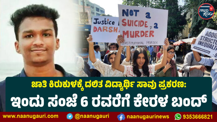 ಜಾತಿ ಆಧಾರಿತ ಕಿರುಕುಳದಿಂದ ಮನನೊಂದಿದ್ದ ಕೇರಳದ ಅಂಚರಕಂಡಿಯ ಕಣ್ಣೂರು ದಂತ ಕಾಲೇಜಿನಲ್ಲಿ ಪ್ರಥಮ ವರ್ಷದ ಬಿಡಿಎಸ್ ವಿದ್ಯಾರ್ಥಿ ಆರ್.ಎಲ್. ನಿತಿನ್ ರಾಜ್ ಆತ್ಮಹತ್ಯೆಗೆ ರಾಜ್ಯದಾದ್ಯಂತ ಆಕ್ರೋಶ ವ್ಯಕ್ತವಾಗಿದೆ. ಕಾಲೇಜು ಕಟ್ಟಡದಿಂದ ಹಾರಿ ಆತ್ಮಹತ್ಯೆ ಮಾಡಿಕೊಂಡ ದಂತ ವೈದ್ಯಕೀಯ ಕಾಲೇಜು ವಿದ್ಯಾರ್ಥಿ ನಿತಿನ್ ರಾಜ್ ಅವರ ಸಾವಿಗೆ ನ್ಯಾಯ ಒದಗಿಸಬೇಕೆಂದು ಒತ್ತಾಯಿಸಿ ಕೇರಳದ ವಿವಿಧ ದಲಿತ ಸಂಘಟನೆಗಳು ಮಂಗಳವಾರ ಬೆಳಿಗ್ಗೆ 6 ರಿಂದ ಸಂಜೆ 6 ರವರೆಗೆ ರಾಜ್ಯಾದ್ಯಂತ ಬಂದ್ ನಡೆಸುತ್ತಿವೆ.