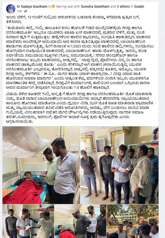 ಗುಬ್ಬಿ ಪೊಲೀಸರು ಆರೋಪಿಗಳ ವಿರುದ್ದ ಭಾರತೀಯ ನ್ಯಾಯ ಸಂಹಿತೆ (ಬಿಎನ್ಎಸ್) ಸೆಕ್ಷನ್ 307 ಮತ್ತು ಪರಿಶಿಷ್ಟ ಜಾತಿಗಳು ಮತ್ತು ಪರಿಶಿಷ್ಟ ಪಂಗಡಗಳ (ದೌರ್ಜನ್ಯಗಳ ತಡೆ) ಕಾಯ್ದೆ-1989 ಅಡಿಯಲ್ಲಿ ಪ್ರಕರಣ ದಾಖಲಿಸಿದ್ದಾರೆ ಎಂದು ವರದಿಯಾಗಿದೆ.