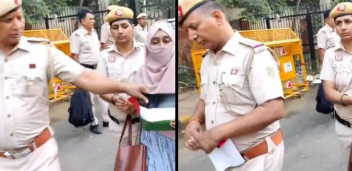 ದೆಹಲಿ: ಪ್ರತಿಭಟನೆ ವೇಳೆ ಮಹಿಳೆಯಿಂದ ಪ್ಯಾಲೆಸ್ತೀನ್ ಧ್ವಜ ಕಿತ್ತುಕೊಂಡು ಹರಿದು ಹಾಕಿದ ಪೊಲೀಸ್‌ ಅಧಿಕಾರಿ