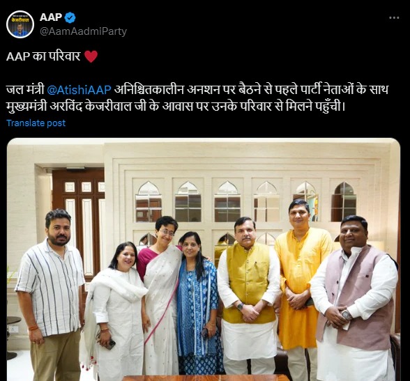 ಇಂದು ಮುಂಜಾನೆ, ಸಿಎಂ ಅರವಿಂದ್ ಕೇಜ್ರಿವಾಲ್ ನಿವಾಸಕ್ಕೆ ಭೇಟಿ ನೀಡಿದ್ದ ಸಚಿವ ಅತಿಶಿ, ಅನಿರ್ದಿಷ್ಟಾವಧಿ ಉಪವಾಸ ಸತ್ಯಾಗ್ರಹ ಕುಳಿತುಕೊಳ್ಳುವ ಮುನ್ನ ಕೇಜ್ರಿವಾಲ್ ಕುಟುಂಬಸ್ಥರ ಜೊತೆ ಮಾತುಕತೆ ನಡೆಸಿದ್ದಾರೆ.