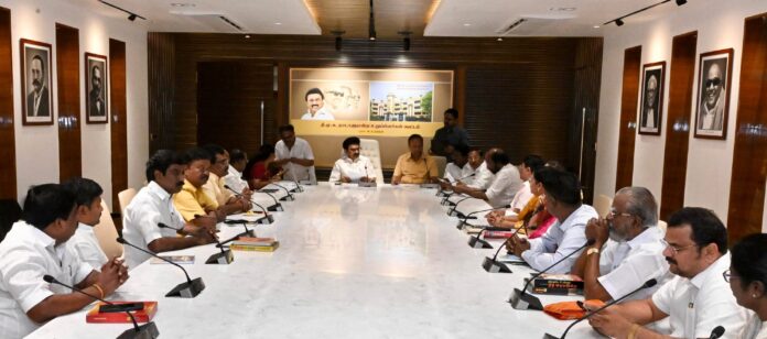 ಎನ್‌ಇಪಿ-ಕ್ಷೇತ್ರ ಪುನರ್‌ವಿಂಗಡಣೆ ನಿರ್ಣಯದ ಕುರಿತು ಸಭೆ ನಡೆಸಿದ ಡಿಎಂಕೆ ಸಂಸದರು
