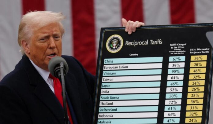 ಶ್ವೇತ ಭವನದ ರೋಸ್ ಗಾರ್ಡನ್ನಲ್ಲಿ ನಡೆದ ‘ಮೇಕ್ ಅಮೆರಿಕ ವೆಲ್ದಿ ಅಗೈನ್’ ಎಂಬ ಕಾರ್ಯಕ್ರಮದಲ್ಲಿ ಮಾತನಾಡಿದ ಟ್ರಂಪ್, ವಿವಿಧ ದೇಶಗಳು ಅಮೆರಿಕದ ಉತ್ಪನ್ನಗಳ ಮೇಲೆ ವಿಧಿಸುತ್ತಿರುವ ಸುಂಕ ಮತ್ತು ಅದಕ್ಕೆ ಪ್ರತಿಯಾಗಿ ಅಮೆರಿಕ ಘೋಷಣೆ ಮಾಡಿದ ಸುಂಕದ ಚಾರ್ಟ್ ಪ್ರದರ್ಶಿಸಿದ್ದಾರೆ.