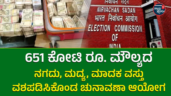 ನಾಲ್ಕು ರಾಜ್ಯಗಳು ಮತ್ತು ಒಂದು ಕೇಂದ್ರಾಡಳಿತ ಪ್ರದೇಶದಲ್ಲಿ ನಡೆಯುತ್ತಿರುವ ವಿಧಾನಸಭಾ ಚುನಾವಣೆಗೆ ಸಂಬಂಧಿಸಿದಂತೆ ಅಧಿಕಾರಿಗಳು 651.51 ಕೋಟಿ ರೂ.ಗೂ ಹೆಚ್ಚು ಮೌಲ್ಯದ ನಗದು, ಮದ್ಯ, ಮಾದಕ ವಸ್ತುಗಳು ಮತ್ತು ಇತರ ಉಚಿತ ವಸ್ತುಗಳನ್ನು ವಶಪಡಿಸಿಕೊಂಡಿದ್ದಾರೆ ಎಂದು ಚುನಾವಣಾ ಆಯೋಗ (ಇಸಿ) ಭಾನುವಾರ (ಏ.06) ತಿಳಿಸಿದೆ.