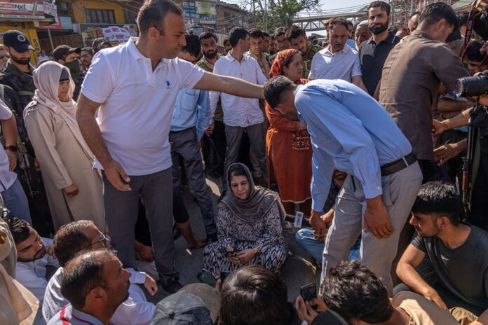 ಪ್ರಸ್ತುತ ಮತದಾನ ನಡೆಯುತ್ತಿರುವ ದಕ್ಷಿಣ ಕಾಶ್ಮೀರದ ಅನಂತನಾಗ್-ರಾಜೌರಿ ಲೋಕಸಭಾ ಕ್ಷೇತ್ರದಿಂದ ಅಭ್ಯರ್ಥಿಯಾಗಿರುವ ಮೆಹಬೂಬಾ ಮುಫ್ತಿ ಅವರು ಪಕ್ಷದ ಮುಖಂಡರು ಮತ್ತು ಕಾರ್ಯಕರ್ತರೊಂದಿಗೆ ಪ್ರತಿಭಟನೆಯಲ್ಲಿ ನಡೆಸಿದರು.