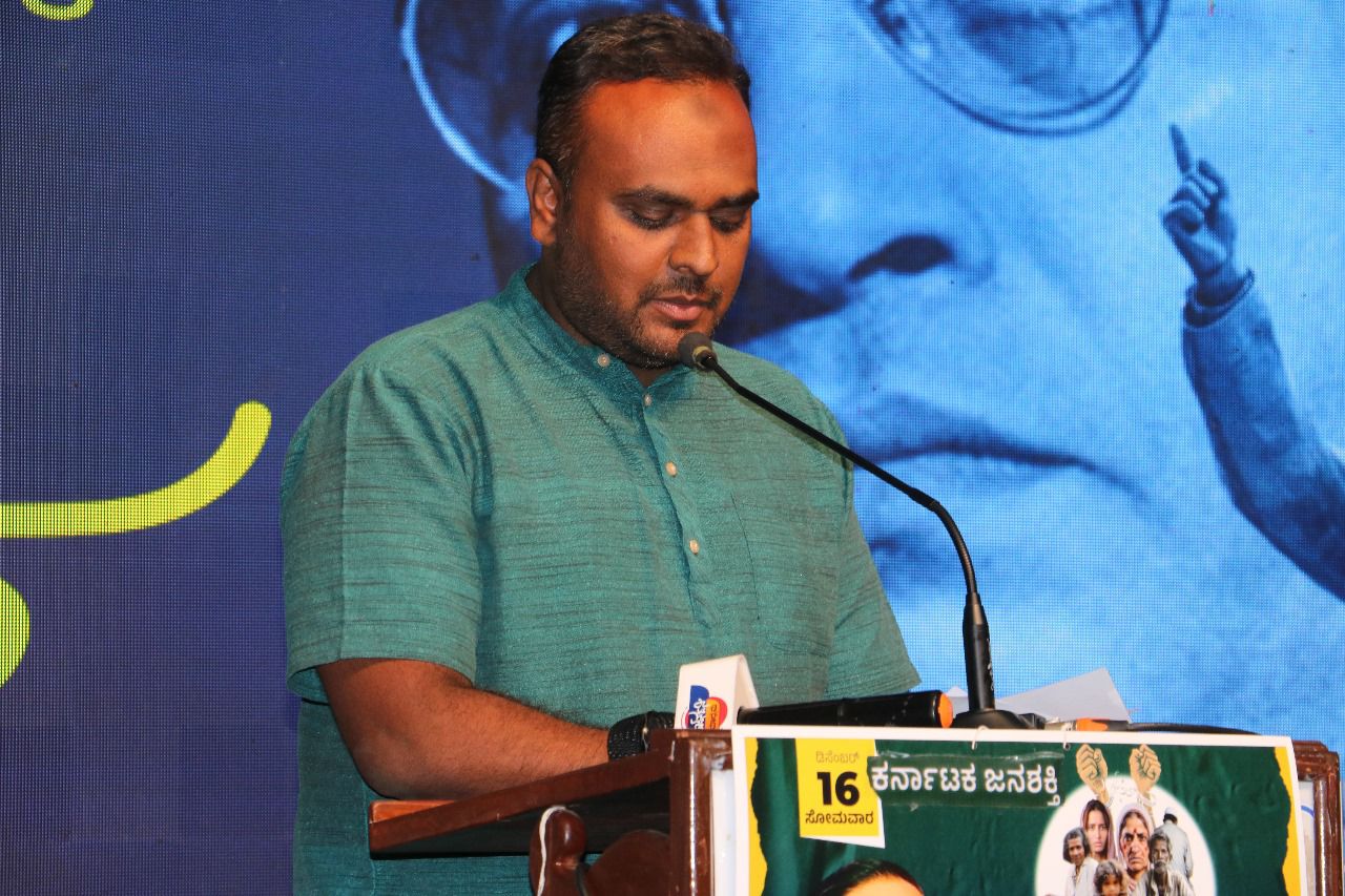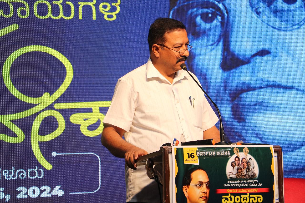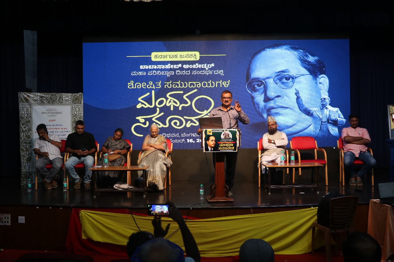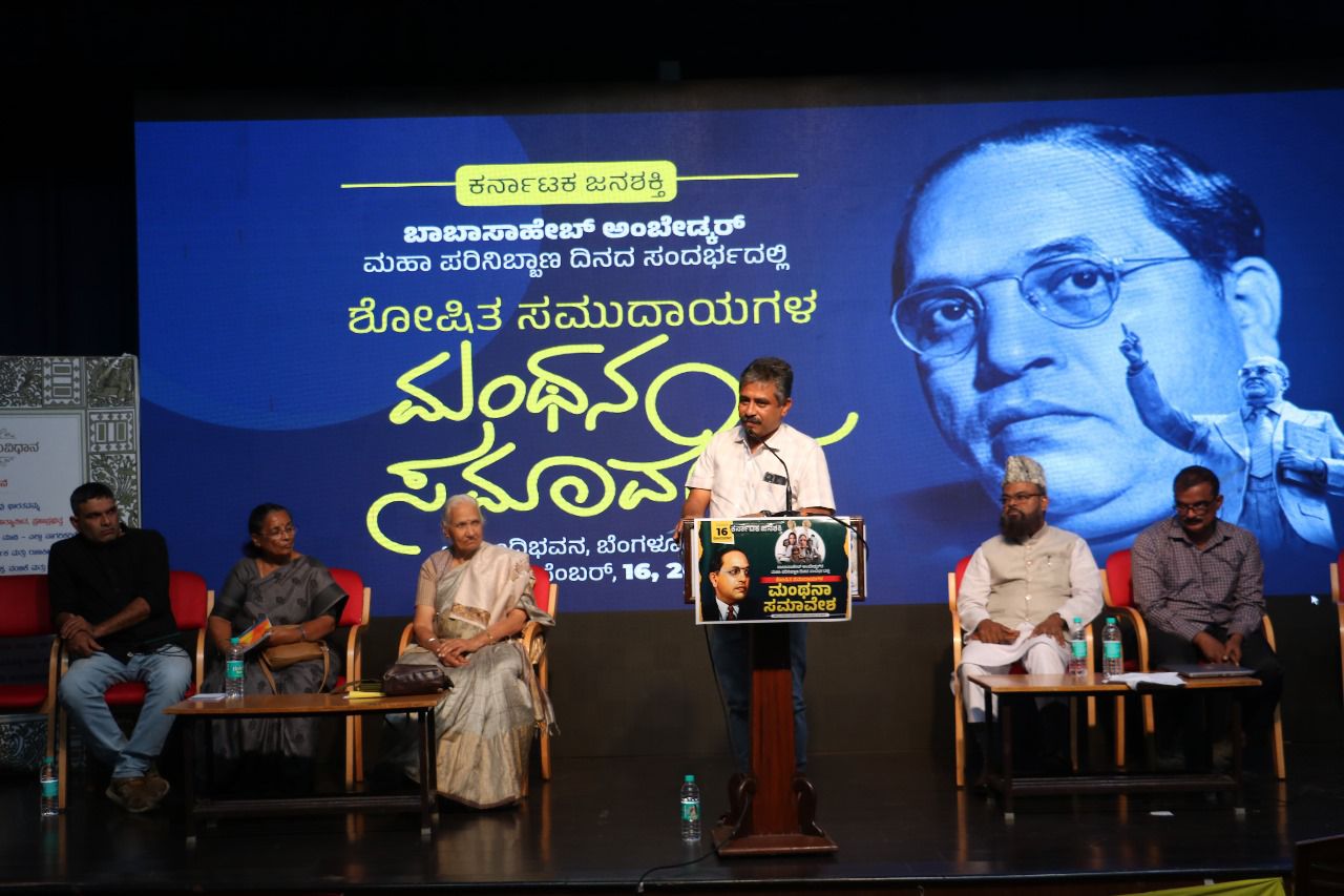 ಕರ್ನಾಟಕ ಜನಶಕ್ತಿ ಸಂಘಟನೆಯು ಡಿ.16ರಂದು ಬೆಂಗಳೂರಿನ ಗಾಂಧೀ ಭವನದಲ್ಲಿ ಡಾ. ಬಿ ಆರ್ ಅಂಬೇಡ್ಕರ್ ಅವರ ಮಹಾಪರಿನಿಬ್ಬಾಣ ದಿನದ ಅಂಗವಾಗಿ ʼಶೋಷಿತ ಸಮುದಾಯಗಳ ಮಂಥನಾ ಸಮಾವೇಶʼ ಹಮ್ಮಿಕೊಂಡಿದ್ದ ಸಮಾವೇಶದಲ್ಲಿ ಉದ್ಘಾಟನೆ ಭಾಷಣದಲ್ಲಿ ಮಾತನಾಡುತ್ತಿದ್ದರು.