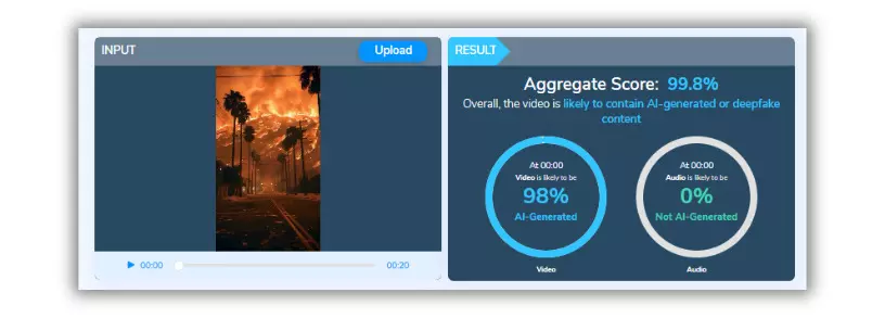 ಹೈವ್ ಮಾಡರೇಶನ್ ಮೂಲಕ ವಿಡಿಯೊವನ್ನು ಪರಿಶೀಲಿಸಿದಾಗ, ಫಲಿತಾಂಶಗಳು 99.8% ರ ಒಟ್ಟು ಸ್ಕೋರ್‌ನೊಂದಿಗೆ ಎಐ- ರಚಿತ ಅಥವಾ ಡೀಪ್‌ಫೇಕ್ ವಿಷಯವನ್ನು ಒಳಗೊಂಡಿರುವ ಸಾಧ್ಯತೆಯಿದೆ ಎಂದು ಹೇಳಿದೆ.