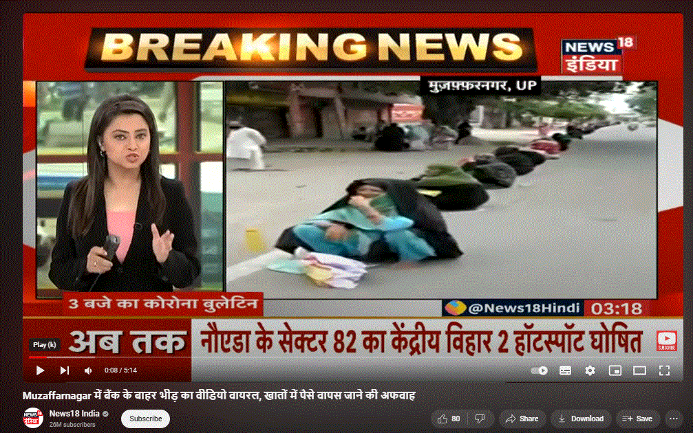 ಏಪ್ರಿಲ್ 20, 2020ರಲ್ಲಿ ನ್ಯೂಸ್‌ 18 ಇಂಡಿಯಾ ಈ ಕುರಿತು ವಿಡಿಯೋ ಸುದ್ದಿ ಪ್ರಕಟಿಸಿತ್ತು. ಸುದ್ದಿಯಲ್ಲಿ “ಜನ್ ಧನ್ ಯೋಜನೆಯ ಫಲಾನುಭವಿಗಳು ತಮ್ಮ ಖಾತೆಯಲ್ಲಿ ಠೇವಣಿ ಇಟ್ಟಿರುವ 500 ರೂ. ಅನ್ನು ಹಿಂತೆಗೆದುಕೊಳ್ಳದಿದ್ದರೆ ಬ್ಯಾಂಕ್‌ಗೆ ವಾಪಸ್ ಹೋಗಲಿದೆ ಎಂಬ ವದಂತಿ ಹಬ್ಬಿದೆ. ಇದರಿಂದ ಮಹಿಳಾ ಖಾತೆದಾರರು ತಮ್ಮ ಖಾತೆಯಿಂದ ಹಣ ವಾಪಸ್ ಪಡೆದುಕೊಳ್ಳಲು ಬ್ಯಾಂಕ್ ಮುಂದೆ ಸರತಿ ಸಾಲಿನಲ್ಲಿ ನಿಂತಿದ್ದಾರೆ. ಆದರೆ, ಬ್ಯಾಂಕ್ ಅಧಿಕಾರಿಗಳು ಖಾತೆಯಿಂದ ಹಣ ವಾಪಸ್ ಹೋಗುವುದಿಲ್ಲ. ಖಾತೆಯಲ್ಲೇ ಉಳಿಯಲಿದೆ ಎಂದು ತಿಳಿಸಿದ್ದಾರೆ ಎಂದು ಹೇಳಲಾಗಿತ್ತು.