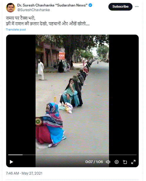 ಆಗಾಗ ಕೋಮು ವೈಷಮ್ಯದ ಸುದ್ದಿಗಳನ್ನು ಹಂಚಿಕೊಳ್ಳುವ ಸುದರ್ಶನ್ ನ್ಯೂಸ್‌ನ ಸಂಪಾದಕ ಸುರೇಶ್ ಚವ್ಹಾಂಕೆ 2021ರಲ್ಲಿ ಇದೇ ವಿಡಿಯೋವನ್ನು ಎಕ್ಸ್‌ನಲ್ಲಿ ಹಂಚಿಕೊಂಡು “ಸಮಯಕ್ಕೆ ಸರಿಯಾಗಿ ತೆರಿಗೆ ಪಾವತಿಸಿ, ಉಚಿತ ಪಡಿತರ ಸಾಲು ನೋಡಿ ಕಣ್ಣು ತೆರೆಯಿರಿ” ಎಂದು ಹಿಂದಿ ಭಾಷೆಯಲ್ಲಿ ಬರೆದುಕೊಂಡಿದ್ದರು. ಈ ಮೂಲಕ ಪರೋಕ್ಷವಾಗಿ ಮುಸ್ಲಿಂ ಮಹಿಳೆಯರನ್ನು ಗುರಿಯಾಗಿಸಿ ದ್ವೇಷ ಹರಡುವ ಪ್ರಯತ್ನ ಮಾಡಿದ್ದರು.