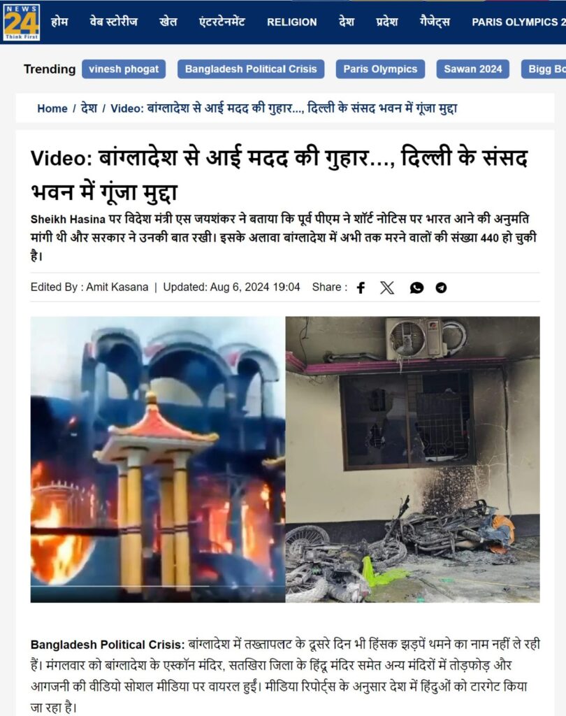 ಈ ನಡುವೆ ಬಾಂಗ್ಲಾದಲ್ಲಿ ಅಲ್ಲಿನ ಅಲ್ಪಸಂಖ್ಯಾತ ಹಿಂದೂಗಳನ್ನು ಗುರಿಯಾಗಿಸಿ ಬಹುಸಂಖ್ಯಾತ ಮುಸ್ಲಿಮರು ದಾಳಿ ನಡೆಸುತ್ತಿದ್ದಾರೆ ಎಂಬ ಆರೋಪಗಳು ಕೇಳಿ ಬಂದಿವೆ. ಈ ಸಂಬಂಧ ಅನೇಕ ಫೋಟೋ, ವಿಡಿಯೋಗಳು ಸಾಮಾಜಿಕ ಜಾಲತಾಣಗಳಲ್ಲಿ ಹರಿದಾಡುತ್ತಿವೆ. ಅವುಗಳಲ್ಲಿ ಬಹುತೇಕ ಫೋಟೋ, ವಿಡಿಯೋಗಳ ಸತ್ಯಾಸತ್ಯತೆಯನ್ನು ನಾವು ಪರಿಶೀಲಿಸಿದ್ದು, ಜನರಿಗೆ ನಿಜಾಂಶ ಏನು ಎಂಬುವುದನ್ನು ತಿಳಿಸುವ ಪ್ರಯತ್ನ ಮಾಡಿದ್ದೇವೆ.
