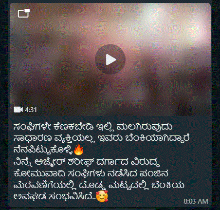 ವಾಟ್ಸಾಪ್‌ನಲ್ಲಿ ಹರಿದಾಡುತ್ತಿರುವ ವಿಡಿಯೋ