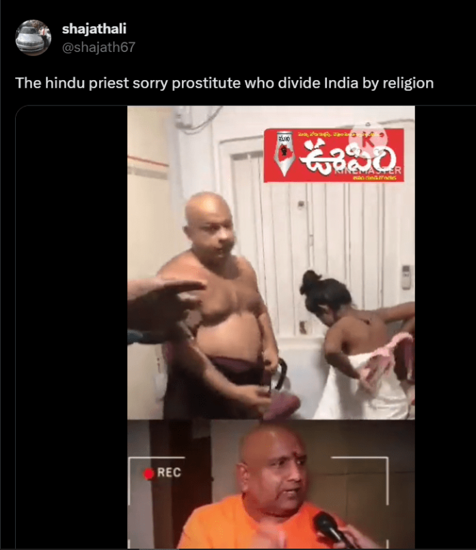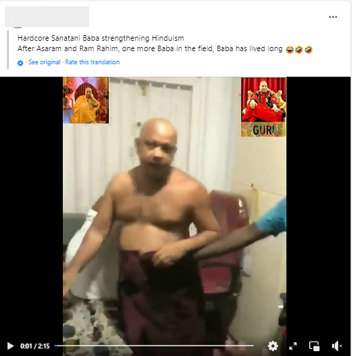 ಹಿಂದೂ ಸನ್ಯಾಸಿಯೊಬ್ಬರು ಮಹಿಳೆಯರೊಂದಿಗೆ ಖಾಸಗಿ ಕ್ಷಣಗಳನ್ನು ಕಳೆಯುವ ವೇಳೆ ಸಿಕ್ಕಿಬಿದ್ದಿದ್ದಾರೆ ಎಂದು ಪ್ರತಿಪಾದಿಸಿ ಸಾಮಾಜಿಕ ಮಾಧ್ಯಮಗಳಲ್ಲಿ ವಿಡಿಯೋವೊಂದು ಹರಿದಾಡುತ್ತಿದೆ.