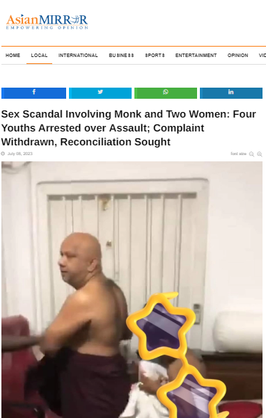 ಫ್ಯಾಕ್ಟ್‌ಚೆಕ್ : ಸಾಮಾಜಿಕ ಮಾಧ್ಯಮಗಳಲ್ಲಿ ಹಂಚಿಕೊಳ್ಳಲಾದ ವಿಡಿಯೋದ ಕುರಿತು ಮಾಡಿರುವ ಪ್ರತಿಪಾದನೆಯನ್ನು ಪರಿಶೀಲಿಸಲು ಗೂಗಲ್ ರಿವರ್ಸ್ ಇಮೇಜ್‌ನಲ್ಲಿ ಸರ್ಚ್ ಮಾಡಿದಾಗ, 08 ಜುಲೈ 2023ರಂದು ಶ್ರೀಲಂಕಾದ ಮಾಧ್ಯಮಗಳಲ್ಲಿ ಪ್ರಕಟವಾದ ವರದಿಗಳು ಲಭ್ಯವಾಗಿವೆ. ವರದಿಗಳ ಪ್ರಕಾರ ಶ್ರೀಲಂಕಾದ ನವಗಮುವಾ ಪ್ರದೇಶದ ಪಲ್ಲೆಗಾಮ ಸುಮನ ಥೆರೋ ಎಂಬ ಬೌದ್ಧ ಸನ್ಯಾಸಿ ಇಬ್ಬರು ಮಹಿಳೆಯರೊಂದಿಗೆ ಅರೆನಗ್ನಾವಸ್ಥೆಯಲ್ಲಿ ಇದ್ದಾಗ ಗುಂಪೊಂದು ದಾಳಿ ನಡೆಸಿದೆ. ವರದಿಗಳು ಇಲ್ಲಿ , ಇಲ್ಲಿ ಮತ್ತು ಇಲ್ಲಿ ನೋಡಬಹುದು.